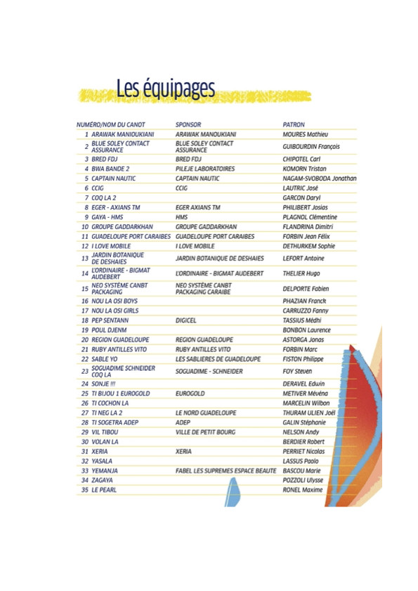 Elle se déroulera en 9 étapes sur 8 jours. On dénombre 35 canots et plus de 300 navigants qui accosteront dans 9 communes de la Guadeloupe.