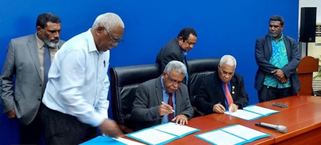 Un « Memorandum of Understanding » a été signé à Port Vila le vendredi 29 juillet 2022 entre le président du gouvernement de la Nouvelle-Calédonie Louis MAPOU et le premier ministre vanuatais Bob LOUGHMAN.