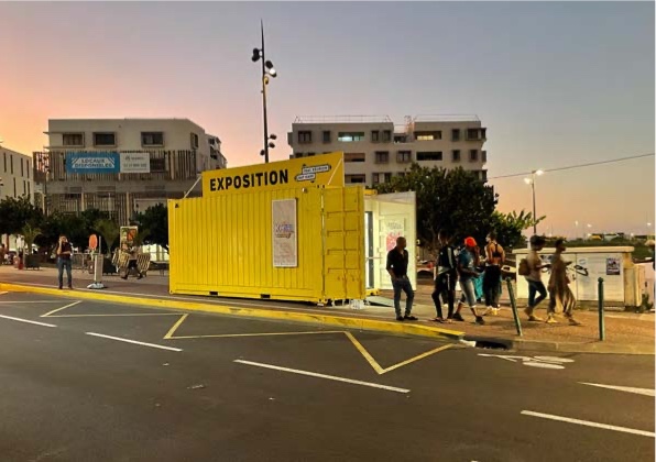 Le container peut aussi bien circuler dans les grands ensembles scolaires, que sur le parvis d’un théâtre ou dans un centre de loisirs et de vacances. Le container est la promesse pour le tissu territorial d’une présence des arts visuels dans les quartiers prioritaires. Grâce à lui, le FRAC développe sa présence sur les communes de l’île et intensifie ses rapports avec les acteurs territoriaux, et le public.